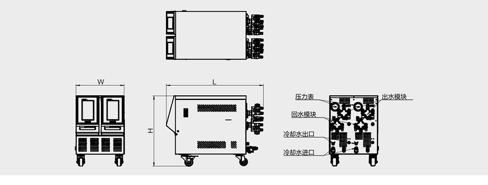 TTWP-1610D水式双温机,加热器功率8KW×2,水泵功率0.75KW×2,最高使用温度可达160℃,用于热成型模具温度控制。