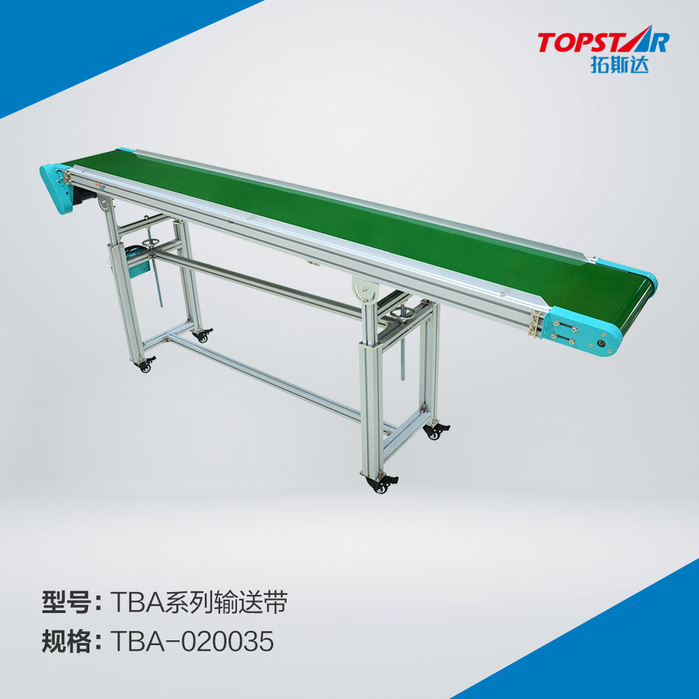TBA-020035输送带特点: 高端高度:1100~1600mm可调; 低端高度:900~1300mm可调; 光滑或高凸缘防落PUR皮带结构,或者采用光滑带叶片的PUR皮带; 容易调节高度和坡度; 铝合金结构,装有带刹车的轮子; 设计制造符合CE标准; 可根据客户特殊需求,订做尺寸。