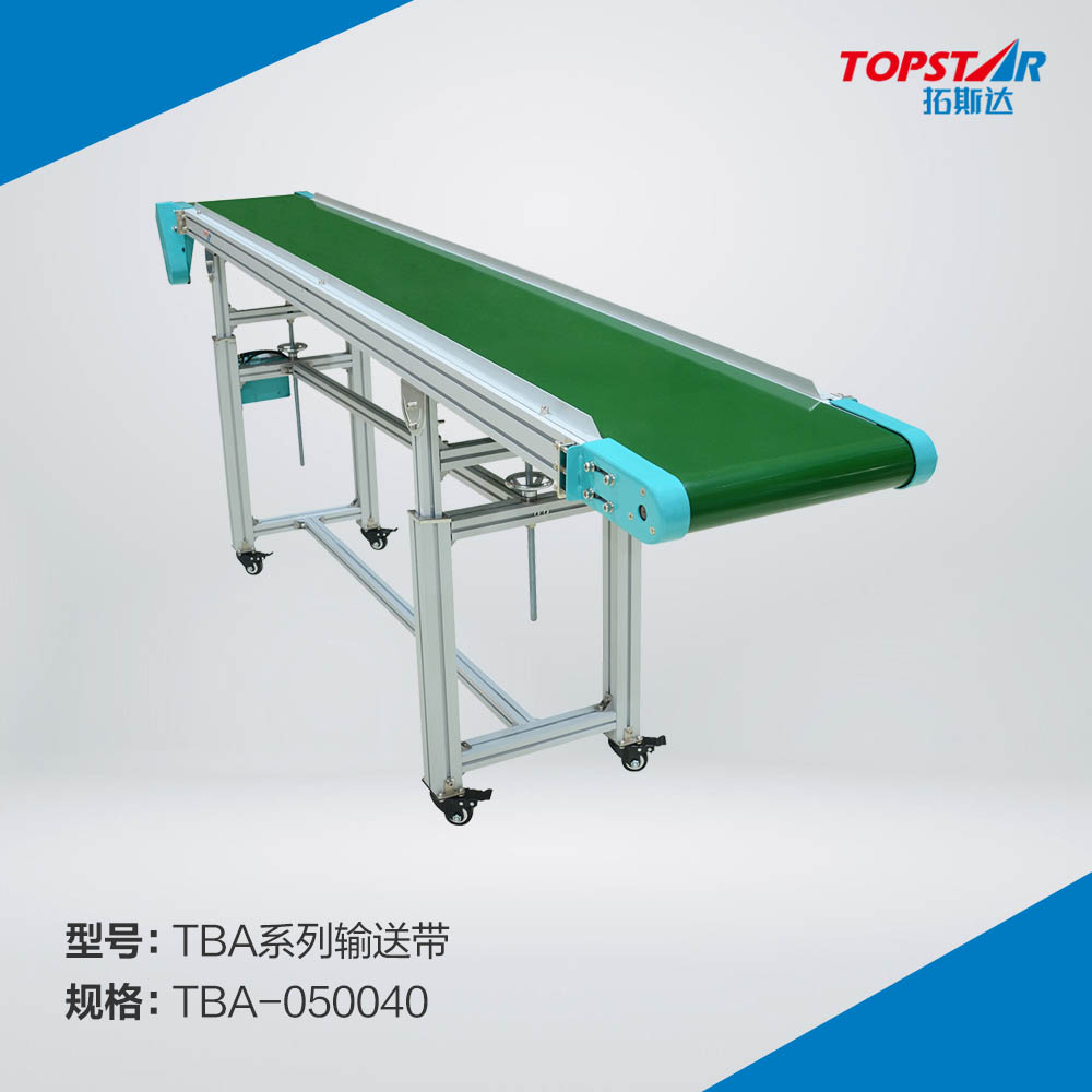 TBA-050040输送带特点: 高端高度:1100~1600mm可调; 低端高度:900~1300mm可调; 光滑或高凸缘防落PUR皮带结构,或者采用光滑带叶片的PUR皮带; 容易调节高度和坡度; 铝合金结构,装有带刹车的轮子; 设计制造符合CE标准; 可根据客户特殊需求,订做尺寸。