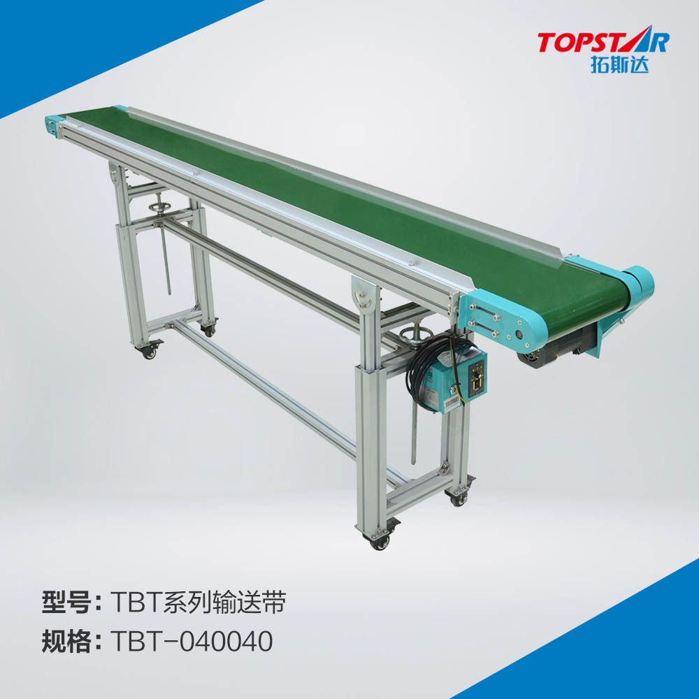 TBT-040040输送带特点: 高端高度:900~1300mm可调; 低端高度:900~1300mm可调; 光滑或高凸缘防落PUR皮带结构,或者采用光滑带叶片的PUR皮带; 容易调节高度和坡度; 铝合金结构,装有带刹车的轮子; 设计制造符合CE标准; 可根据客户特殊需求,订做尺寸。
