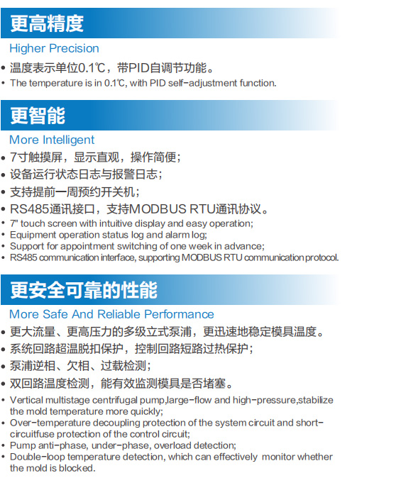 更大流量、更高压力的多级立式泵浦,更迅速地稳定模具温度;