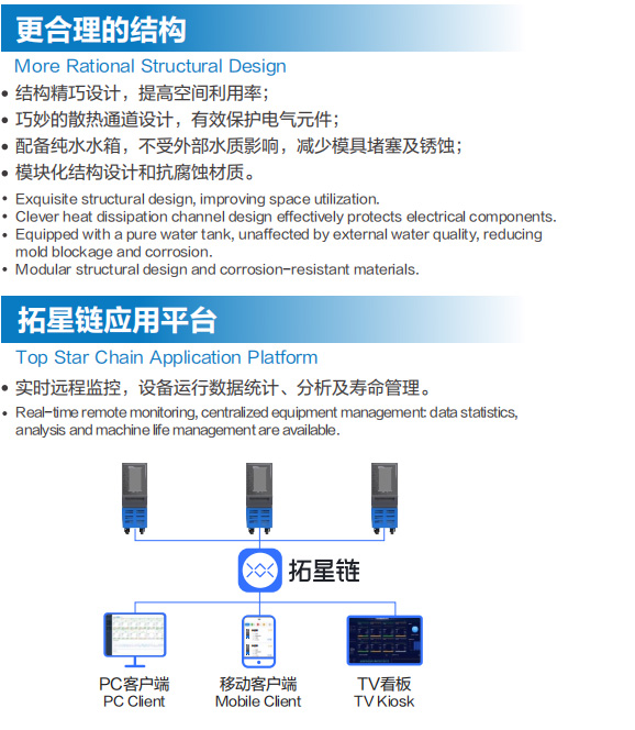 TTWP-1610P纯水模温机特点: 独特的加热设计,适合不同温控场所使; 系统回路超温脱扣保护,控制回路短路过热保; 采用七寸触摸屏设计,操作简单。 采用拓斯达自主研发控制器,温度控制精准稳定。 独特的加热设计,适合不同温控场所使用。 安全保护及故障指示系统完善,维修方便无需专业人员。