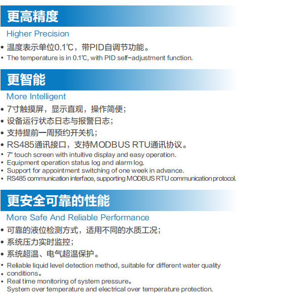 TTWP-163024P纯水模温机特点: 独特的加热设计,适合不同温控场所使; 系统回路超温脱扣保护,控制回路短路过热保; 采用七寸触摸屏设计,操作简单。 采用拓斯达自主研发控制器,温度控制精准稳定。 独特的加热设计,适合不同温控场所使用。 安全保护及故障指示系统完善,维修方便无需专业人员。